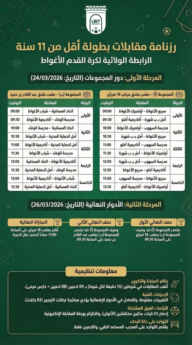 براعمنا اليوم.. نجومنا غداً: انطلاق بطولة أقل من 11 سنة
